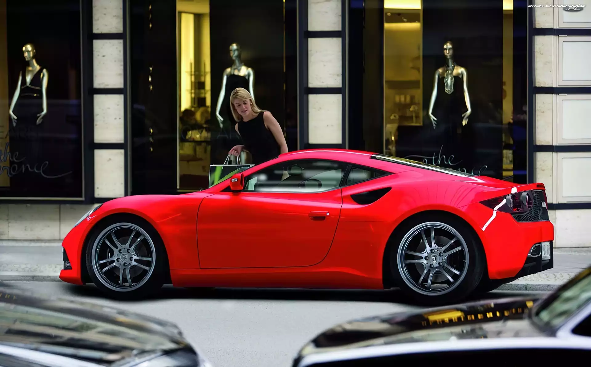 Czerwona, Artega GT, Reklama, Kobieta- Zdjęcia samochodów