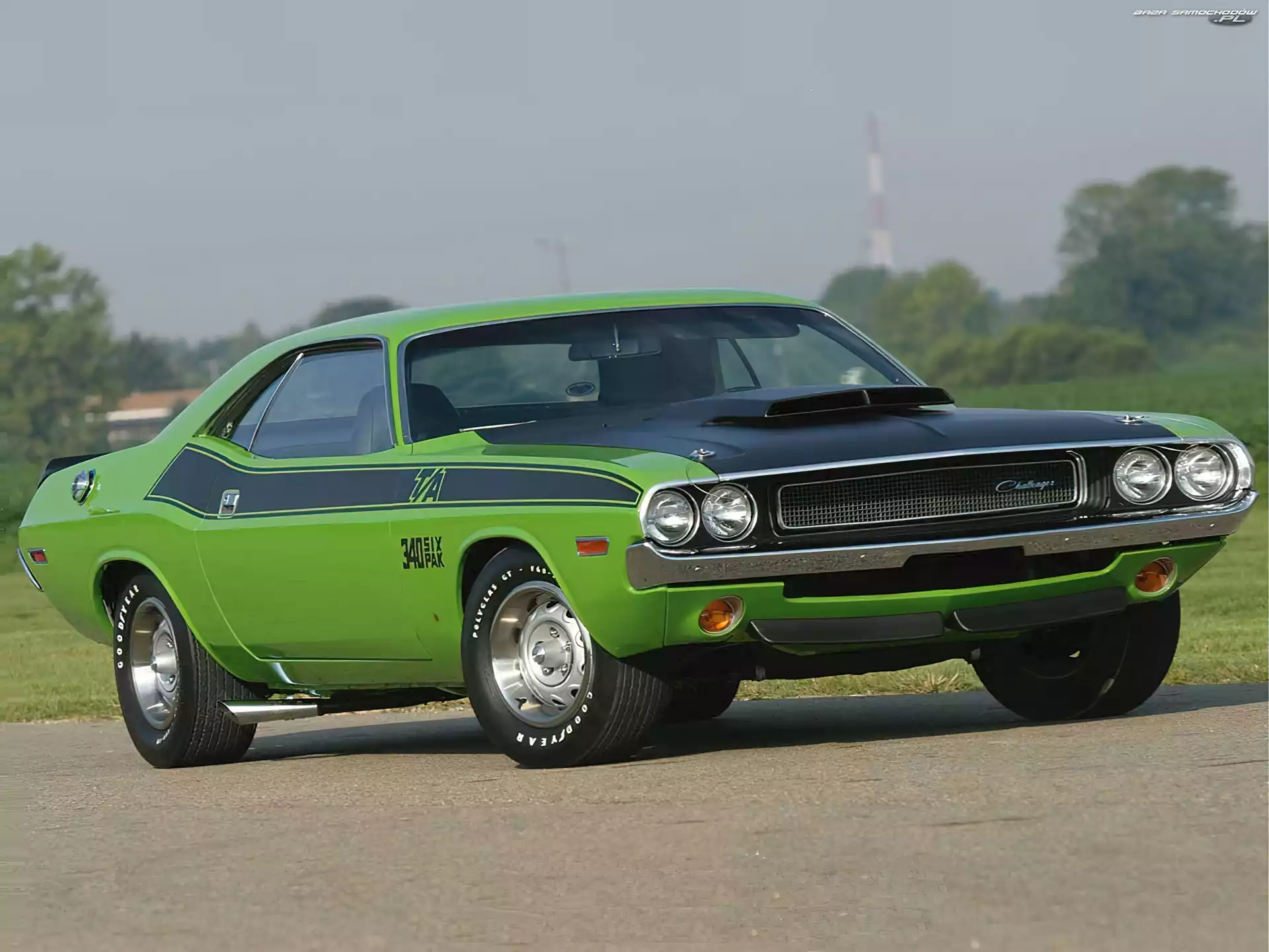 Zielony, Dodge Challenger, Maska, Wlot- Zdjęcia samochodów