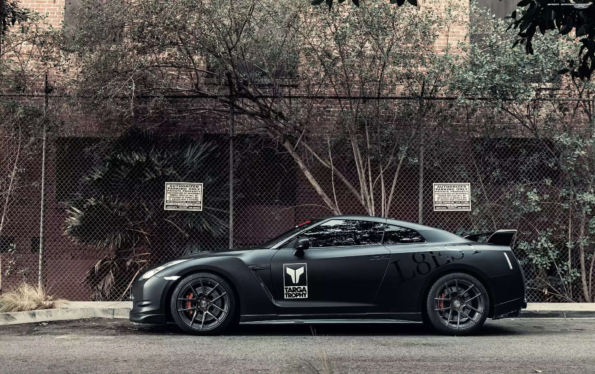 GT-R, Drzewa, Nissan, Ogrodzenie- Zdjęcia samochodów